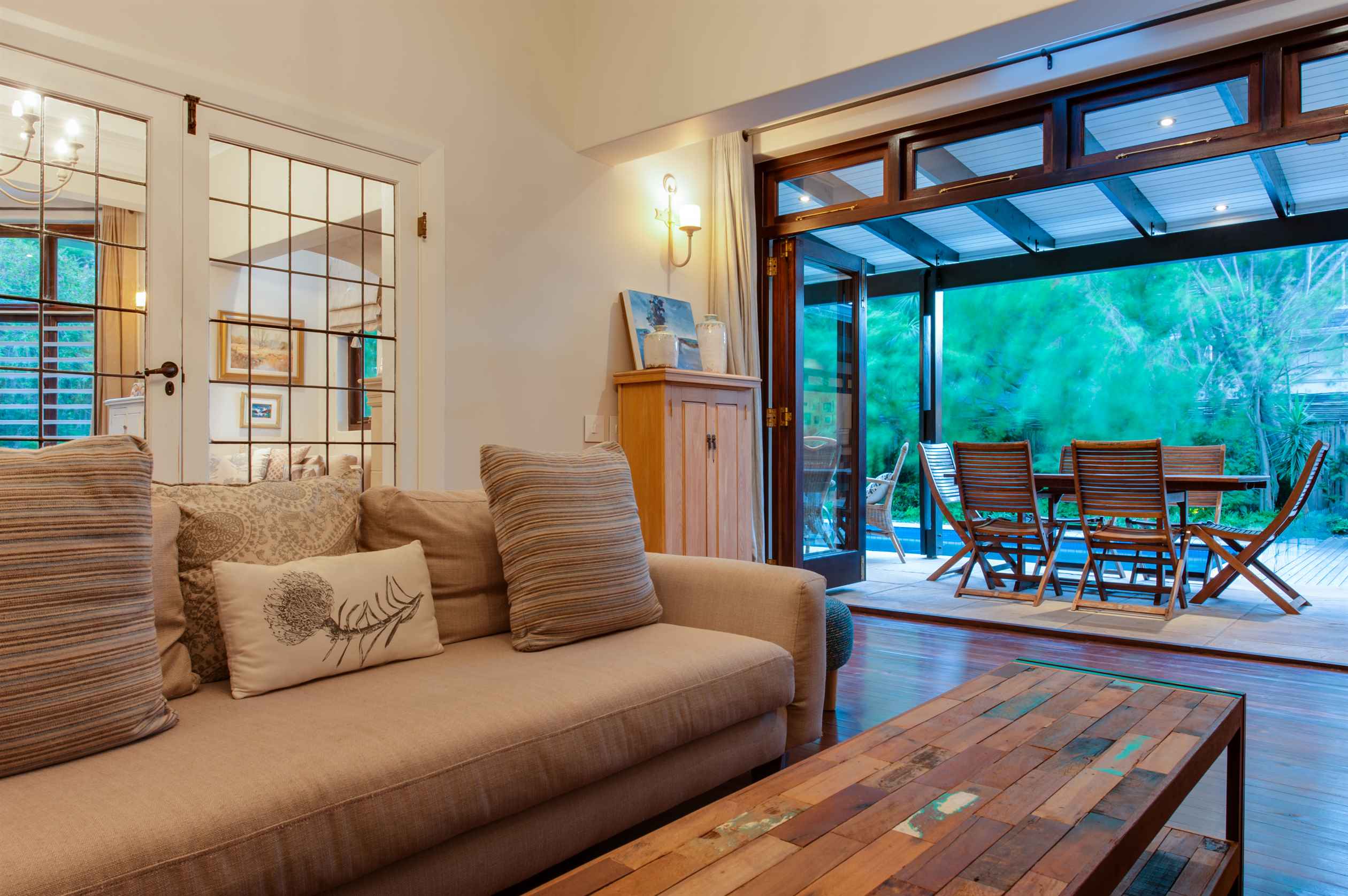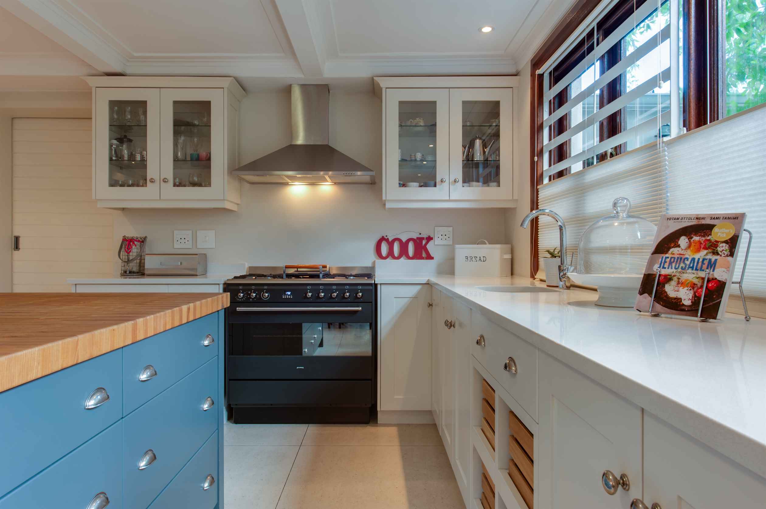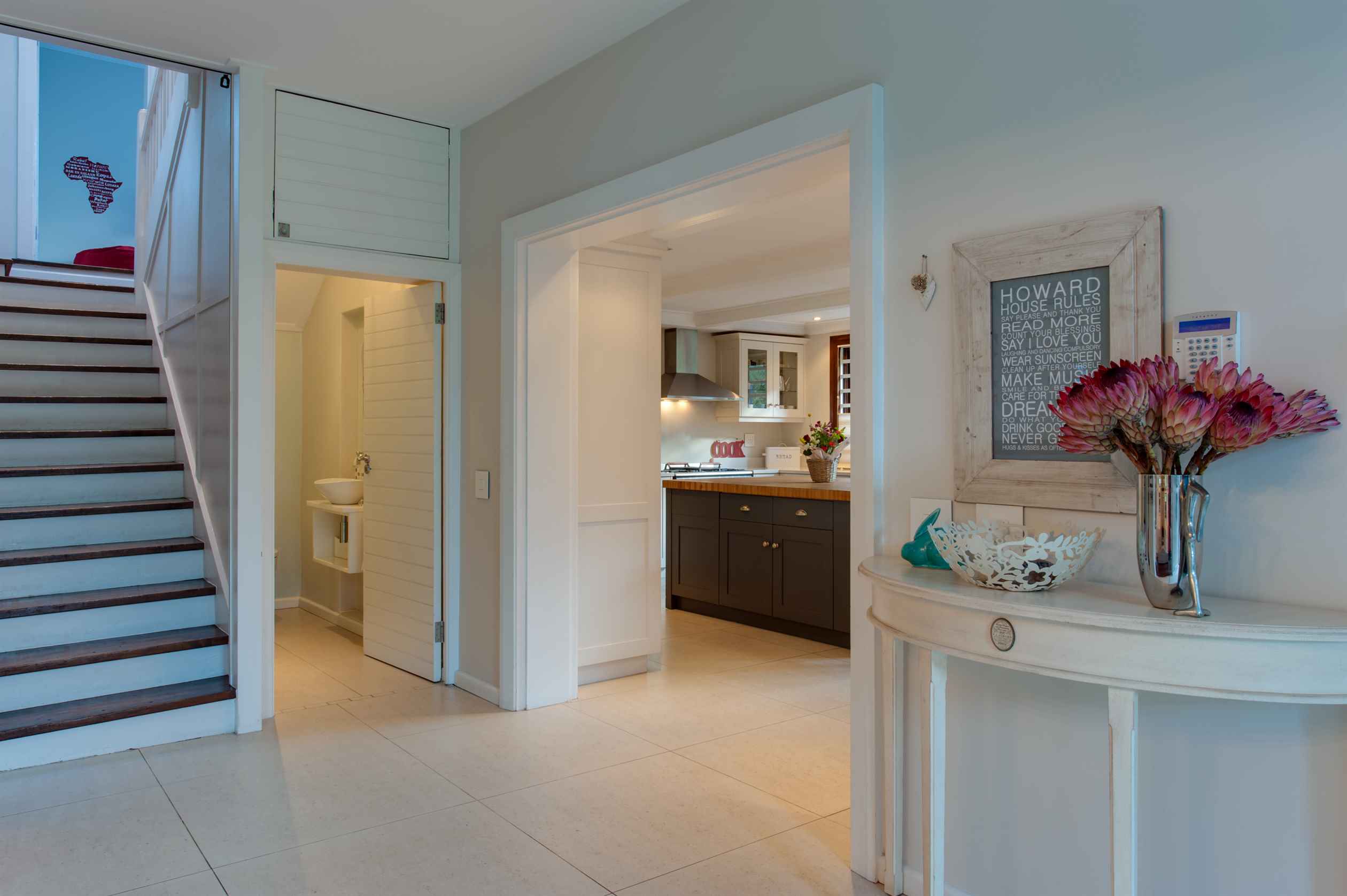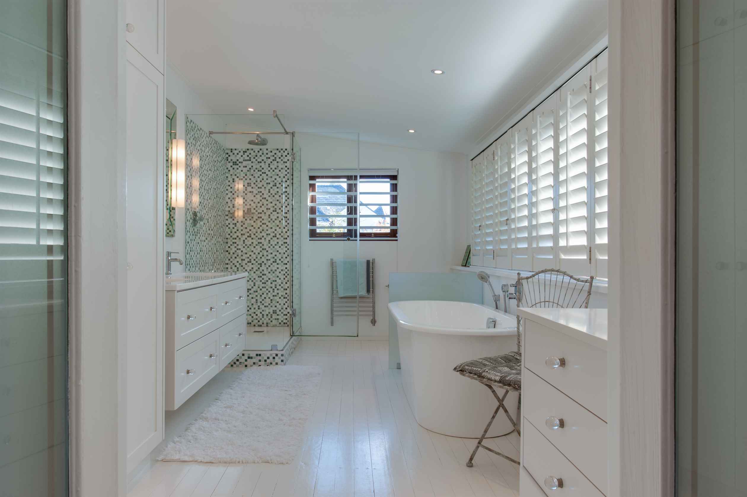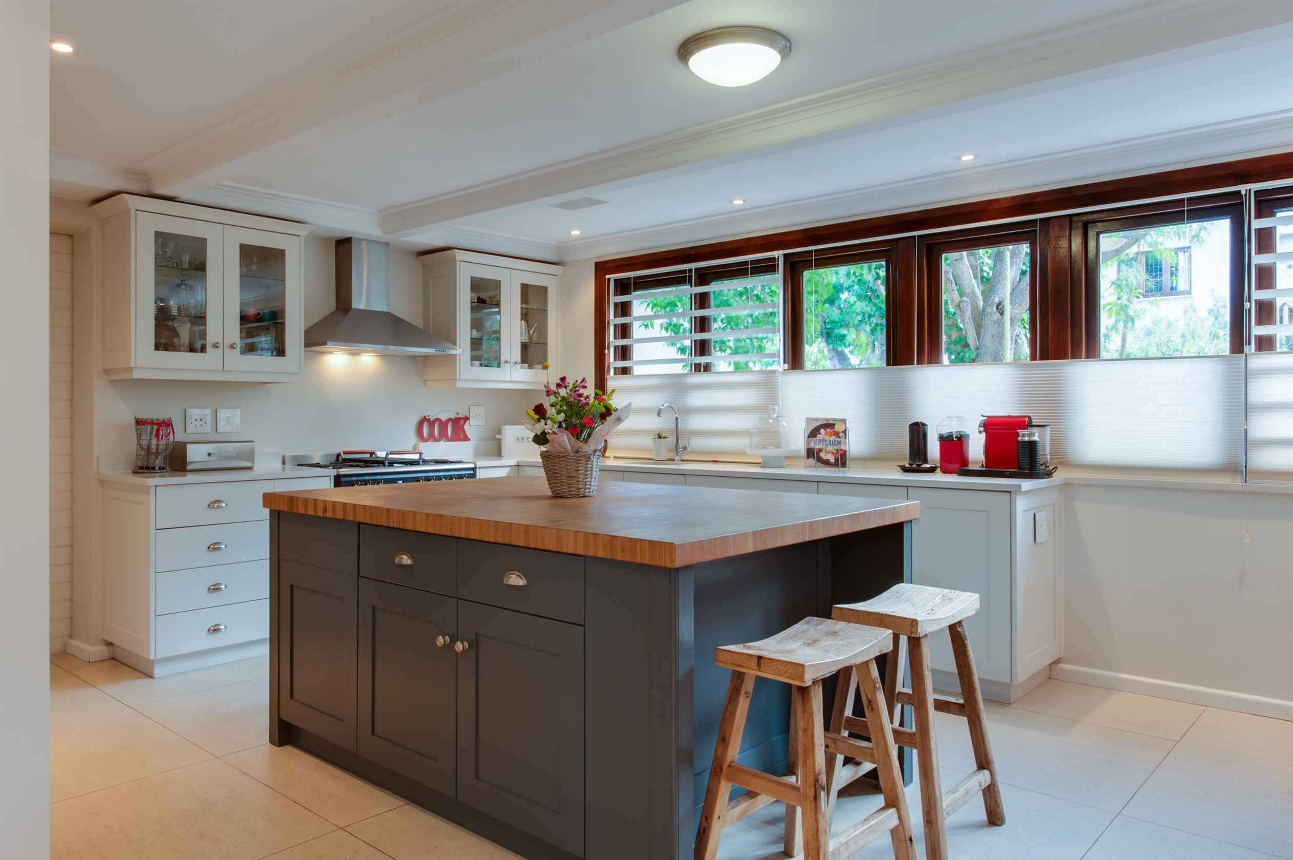 The wrap around veranda ends with the new braai, which holds a commanding position looking over the sun drenched pool and garden with views of the Kirstenbosch buttresses beyond. The loss of light that comes with a deep veranda attached to a deep playroom was alleviated by adding skylights.