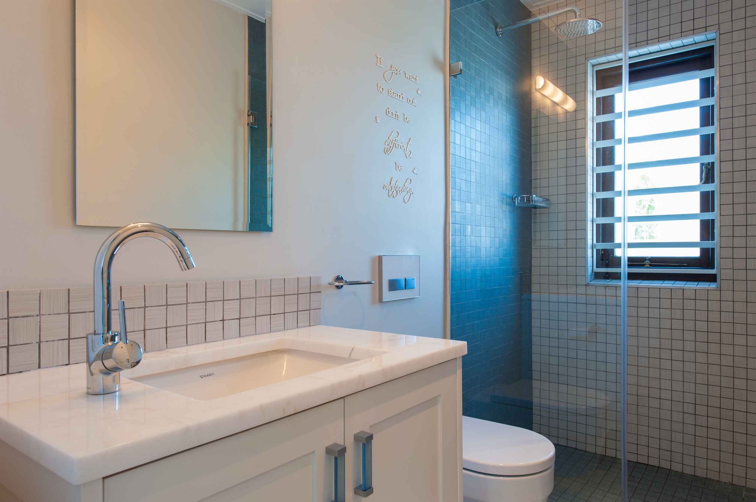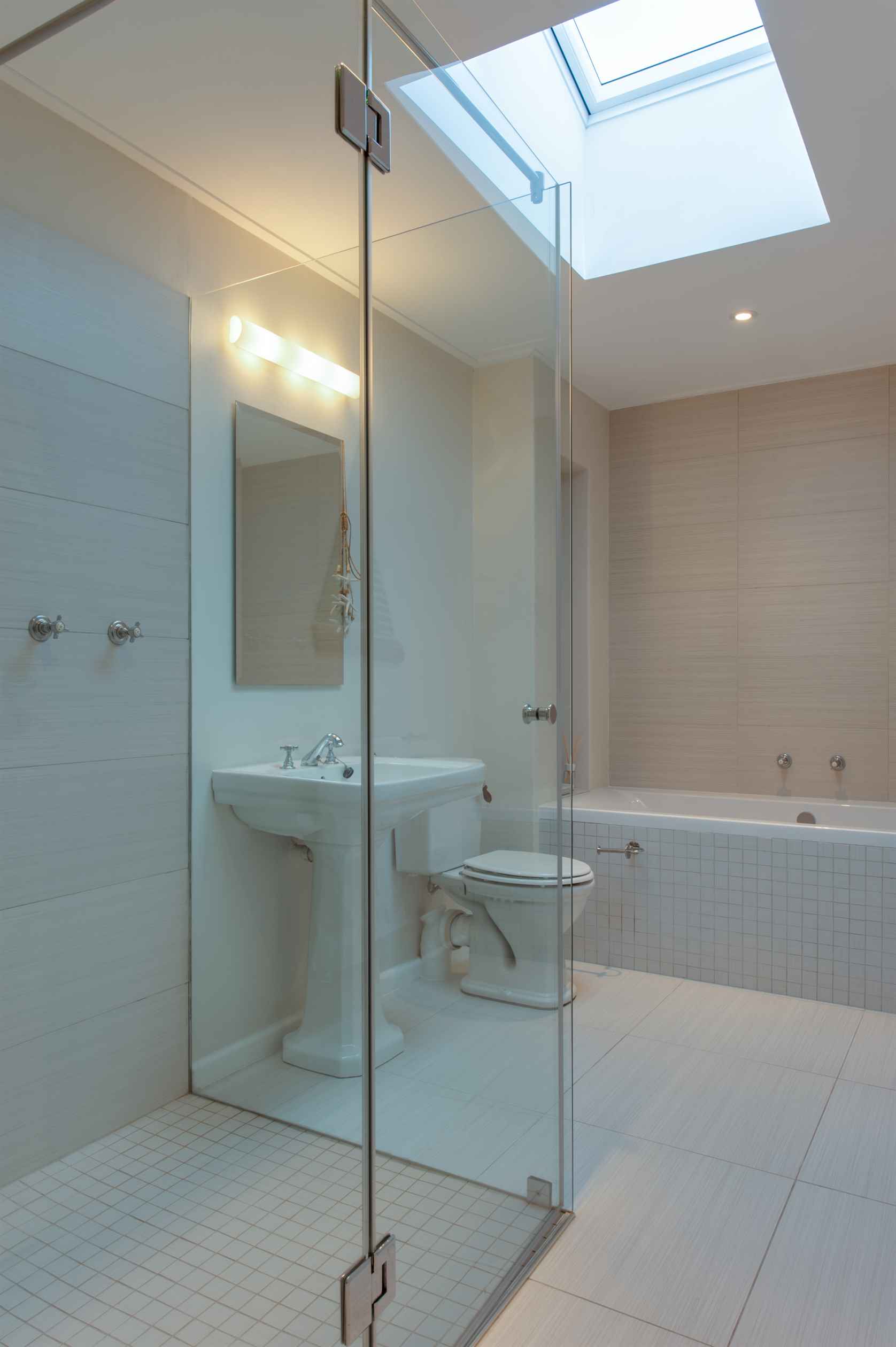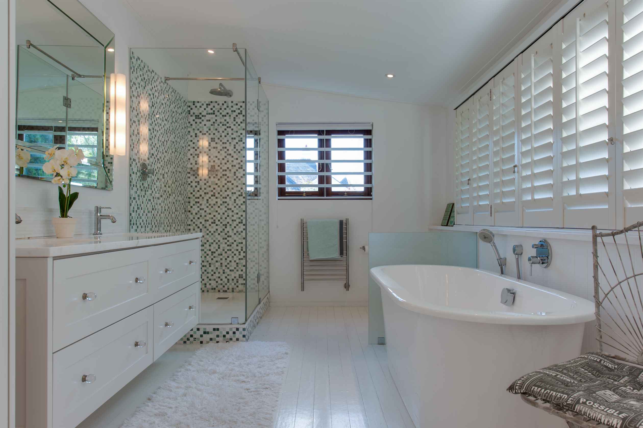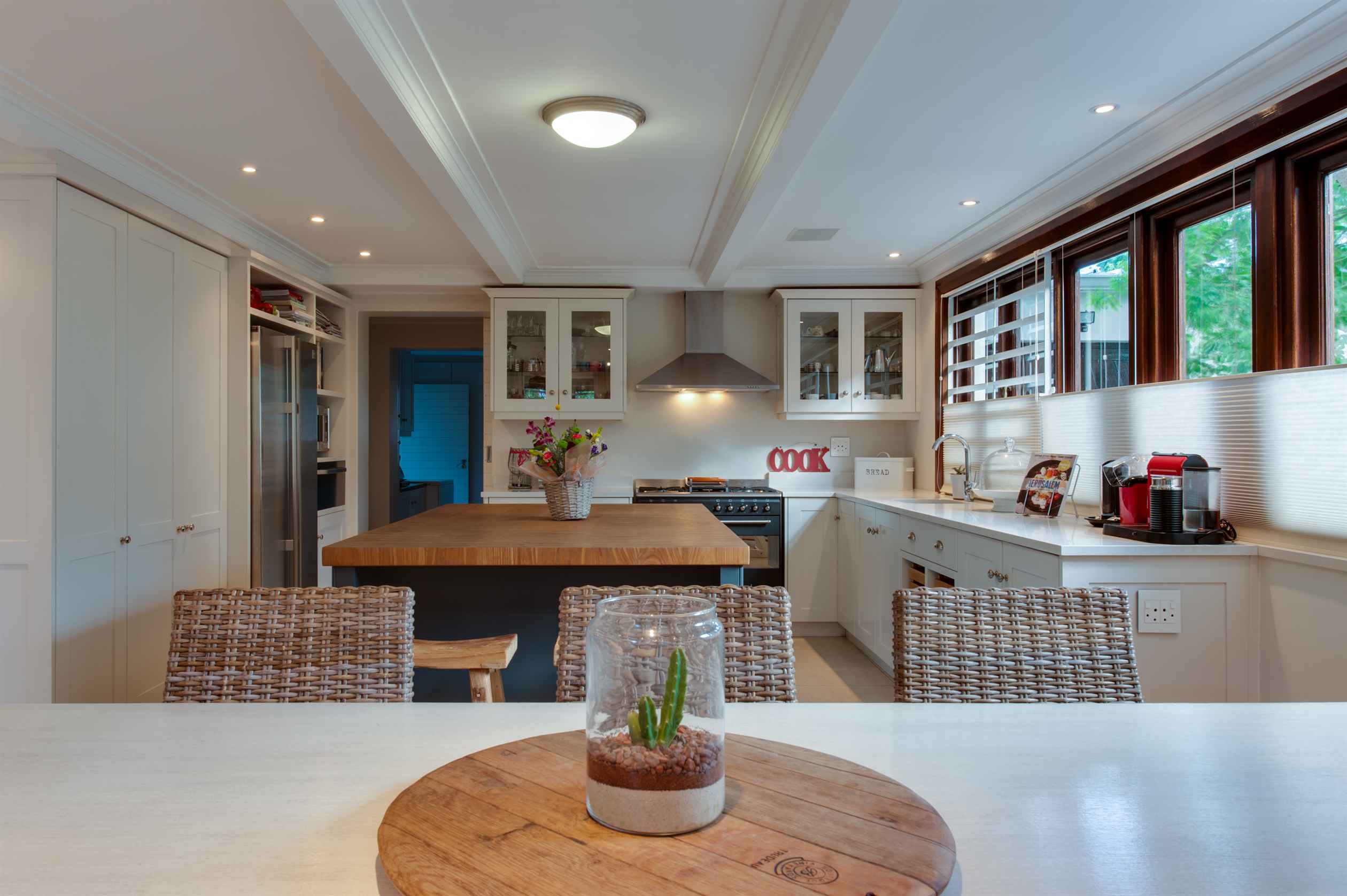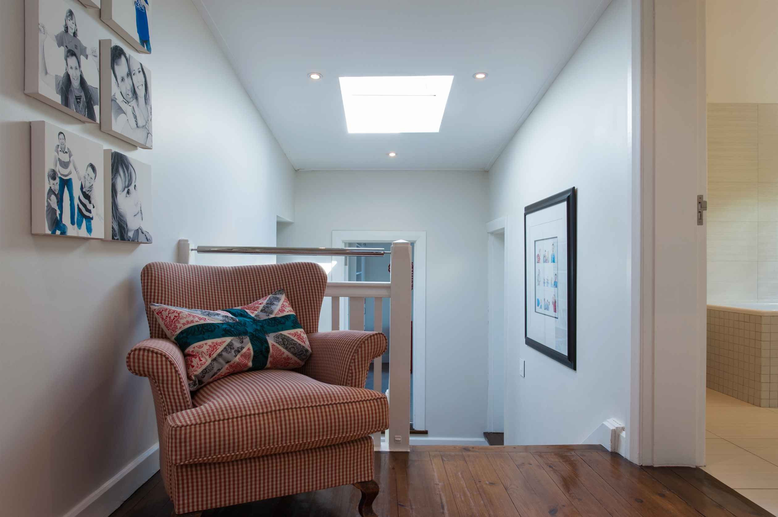 Upstairs on the South side of the house two new bedrooms were fashioned, one above the old garage looking west and one above the new staff and service quarters built within the old drying yard – looking east. The old north side garden balcony was transformed into a light filled en-suite to the main bedroom allowing the main bedroom to dispose of its old cramped en-suite and revert back to its former glory. The pokey old bathroom with separate toilet was renovated and opened up and the small passage bedroom found new status as the parents study. Centrally placed skylights over the staircase landings bring ample light into the bright new airy interior. No more dark Tudor!